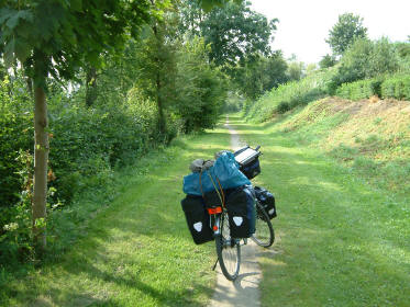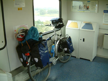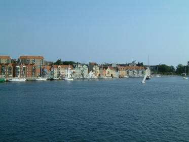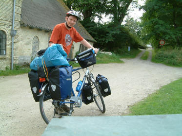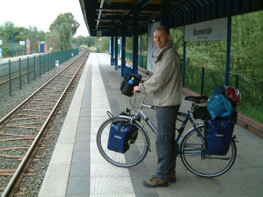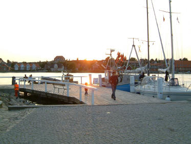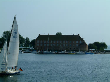 Los geht es Sonnabend Morgen um 8 Uhr, Wetter bewölkt, ich radle zum Bahnhof, Verabschiedung von meiner Frau, dann kommt auch schon der Zug. Schnell das schwere Rad hineingehoben, und los geht die Reise. Umsteigen in Ulzburg-Süd, die gleiche Prozedur. Die AKN ereicht Neumünster, dank Fahrstuhl kann ich problemlos den Fahrsteig wechseln. Dann kommt der Zug nach Padborg. Ich halte nach dem Fahrradwagon Ausschau. Gefunden. Aber was soll denn das sein? Eine nur ca 50cm große Tür, in ein Meter Höhe. Oh mein Gott, wie soll ich denn da mein Fahrrad durchbekommen. Ich hebe das Vorderrad an, es passt gerade so mit den Taschen durch. Ein anderer Passagier hilft mit, zieht von Vorne am Rad während ich es von Hinten hochaste. Mit viel Kraft und hin und her ruckeln zwängt es sich durch den viel zu engen Türspalt. Ja haben die von der Bahn noch nie ein Fahrrad verladen? Das gibt es dich gar nicht. Innen angekommen stelle ich das Rad an den vorgesehen Platz ab, es ist sehr laut in dem Abteil, weil die Türen zum nächsten Wagon nicht richtig schließen und somit die starken Fahrgeräusche vom Verbindungsgang durchdringen. Ich fluche, denn so habe ich mir das alles nicht vorgestellt. Da gibt es noch viel Verbesserungspotential, liebe Leute von der Bahn. Heimatbahnhof Fahrrad im EC In Padborg dann wird es noch schlimmer. Der Bahnsteig ist hier noch niedriger als in Neumünster. Ich muss das Rad samt Gepäck wieder durch die enge Tür asten, dahinter geht es ca 1,5 m steil nach unten. Diesmal helfen mir eine Passagierin und ein Schaffner. Bin ich froh, als ich alles heil am Boden habe. Wenigstens scheint hier jetzt die Sonne, und als ich den Radweg Richtung Kupfermühle erreiche, erhellt sich auch wieder meine Mine. Radweg Richtung Kupfermühle See bei Kupfermühle Schnell erreiche ich über schöne Feldwege den Fjordvejen, einer kleine schönen Straße immer am Flensburger Fjord lang. Leider bläst ein ziemlich heftiger Wind, natürlich genau von vorne, und ich quäle mich teilweise im kleinsten Gang vorwärts. Aber die Aussicht ist grandios, das Wasser fasziniert, und es ist übersäht mit Segelbooten. Das entschädigt doch etwas für die Strapazen. Es wird wärmer.. Segelboote auf der Ostsee Schließlich erreiche ich Grasten, und bei meinem Lieblingsimbiss unten am Hafen unter der Klappbrücke mache ich Pause und verdrücke einen Hamburger. Dazu noch ein Käffchen und ein Däne, der meinte, mir seine ganze Lebensgeschichte erzählen zu müssen. Halb Dänisch, halb Deutsch. Ich verstehe nicht viel, nicke aber freundlich nach jedem Satz, den er sagt. Als es mir zuviel wird und ein Nackenmuskelkater droht, schwinge ich meinen Hintern wieder auf den Sattel und fahre weiter. Ich ereiche Broager, dessen weit sichtbaren doppelten Kirchtürme berühmt für diese Gegend sind. Ich fahre an der hübschen Kirche vorbei und erreiche den Vemmingbund, eine Badestrandbucht, wo ich mir ein lecker Softeis gönne. Broager Kiosk am Vemmingbund Dann mach ich mich auf Richtung Sonderborg. Ich komme an Dybbol vorbei, welches berühmt ist für seine Schanzen und eine Schlacht aus dem Jahre 1864. Auch die Mühle ist sehenswert. Dann geht es weiter , und ich habe schönen Ausblick über den Fjord auf Sonderborg. Mühle von Dybbol Hafen von Sonderborg Vom Hafen aus hat man einen guten Blick auf das Schloss. Auf dem Fjord herrscht ein buntes treiben, und alle 30 Minuten öffnet sich die Klappbrücke, damit die Segelschiffe mit ihren langen Masten vorbeifahren können. Sonderborg Schloß 3-Master vor der Brücke Ich spaziere noch etwas durch die Stadt, bevor ich mich dann Richtung Campingplatz aufmache. Der Campingplatz liegt direkt an einer Tennisanlage, was ich erst am nächsten Morgen bemerke - ein ständiges "Bing - Bong" reißt mich aus dem Schlaf, das war wohl das erste und letzte mal, dass ich hier übernachtet habe. Innenstadt Sonderborg Abendstimmung am Hafen |