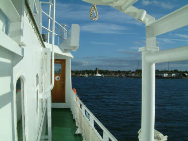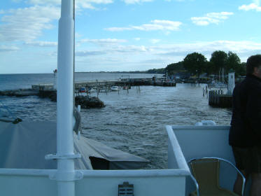 Wir trinken ein Bierchen zusammen, dann kommt auch schon die Fähre.
