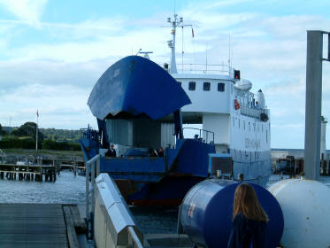 Im strahlendem Sonnenschein warte ich auf die Fähre und unterhalte