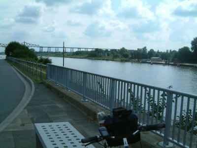 Kurz vor Rendsburg geht es dann über, bzw. besser gesagt unter den Nord-Ostsee Kanal hindurch. Dazu benutzen Radfahrer und Fußgänger einen Fahrstuhl, der einiges an Metern Bergab fährt. Unten angekommen führt ein kleiner Tunnel auf die andere Seite, und dort geht es per Fahrstuhl wieder Richtung Tageslicht.